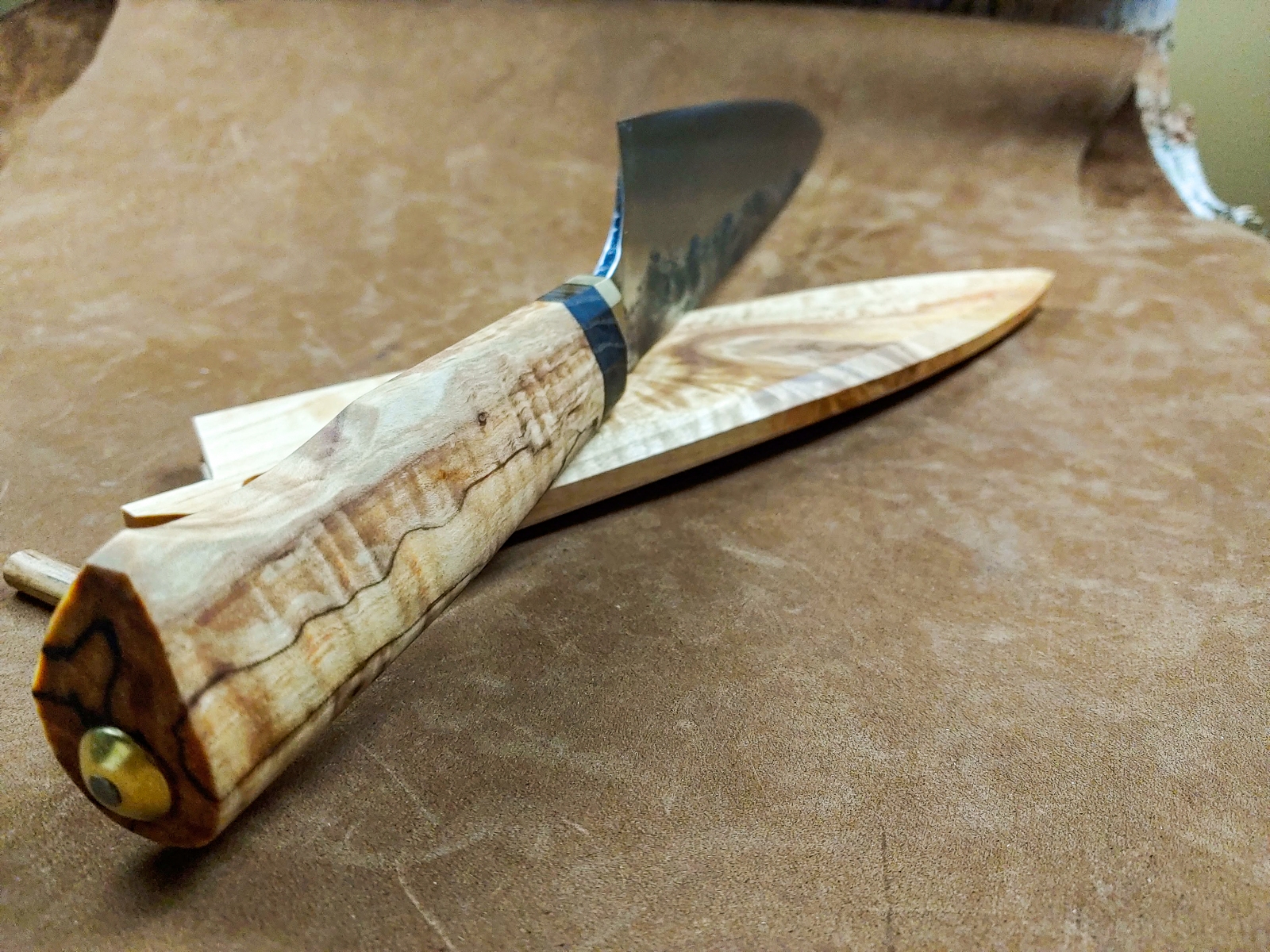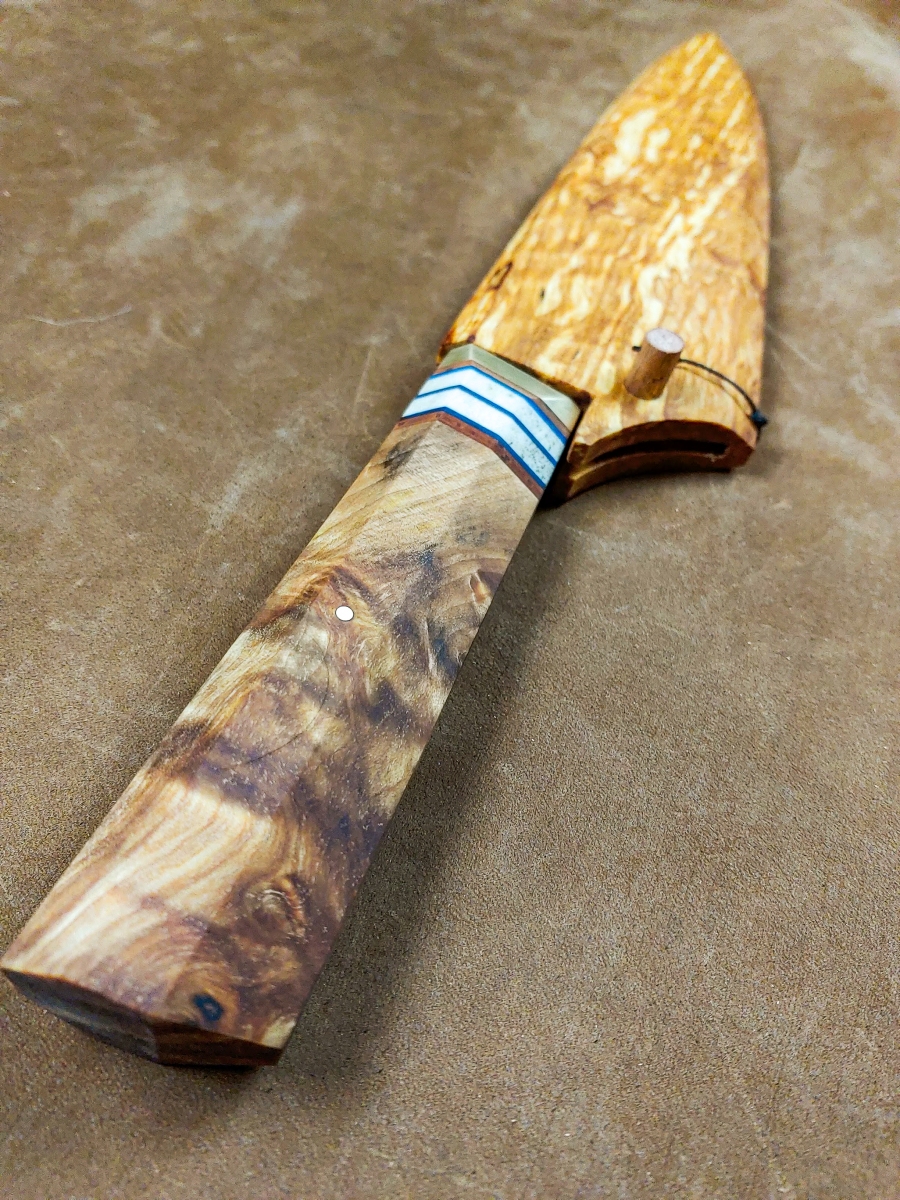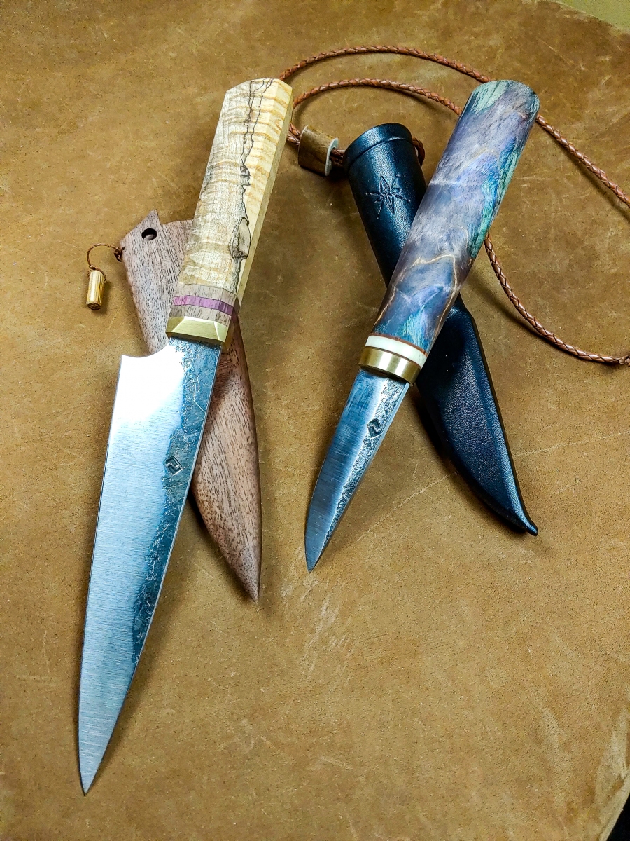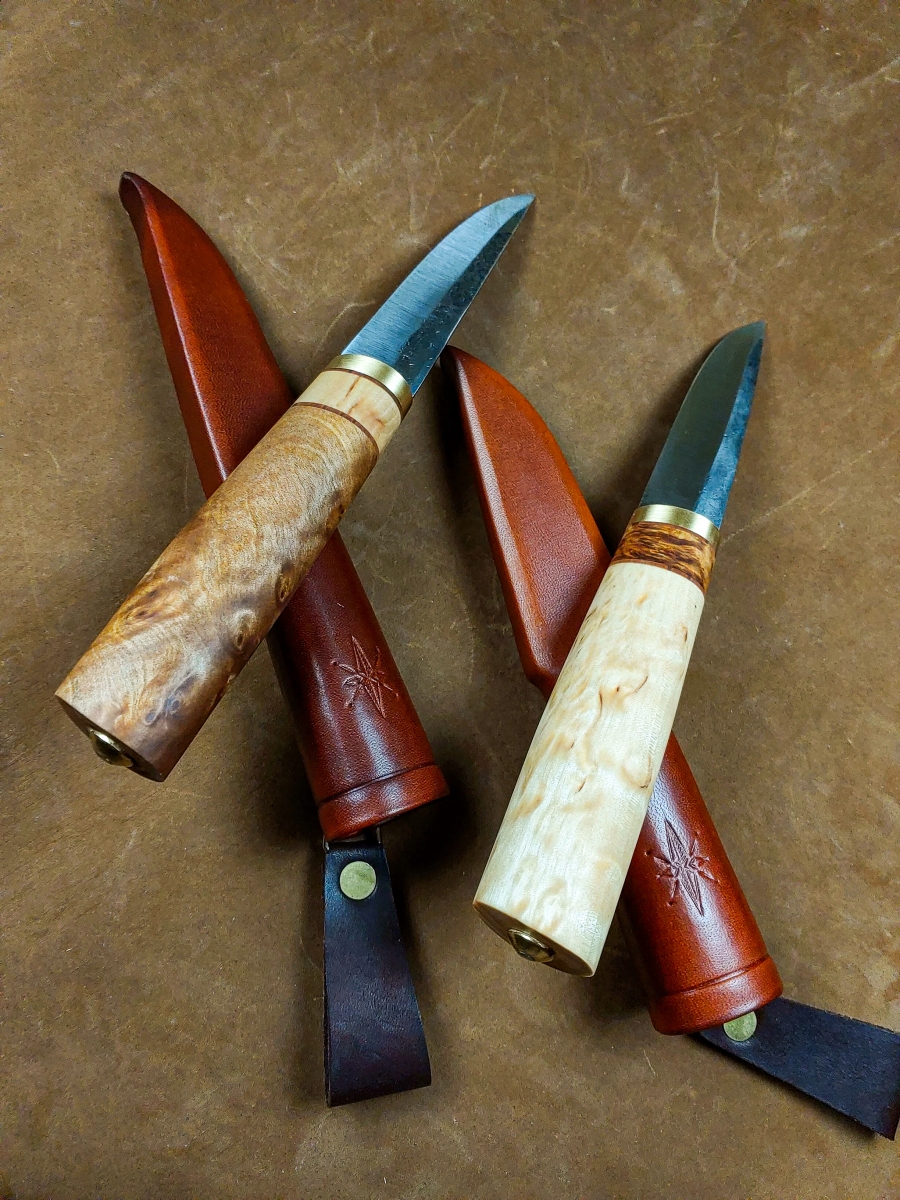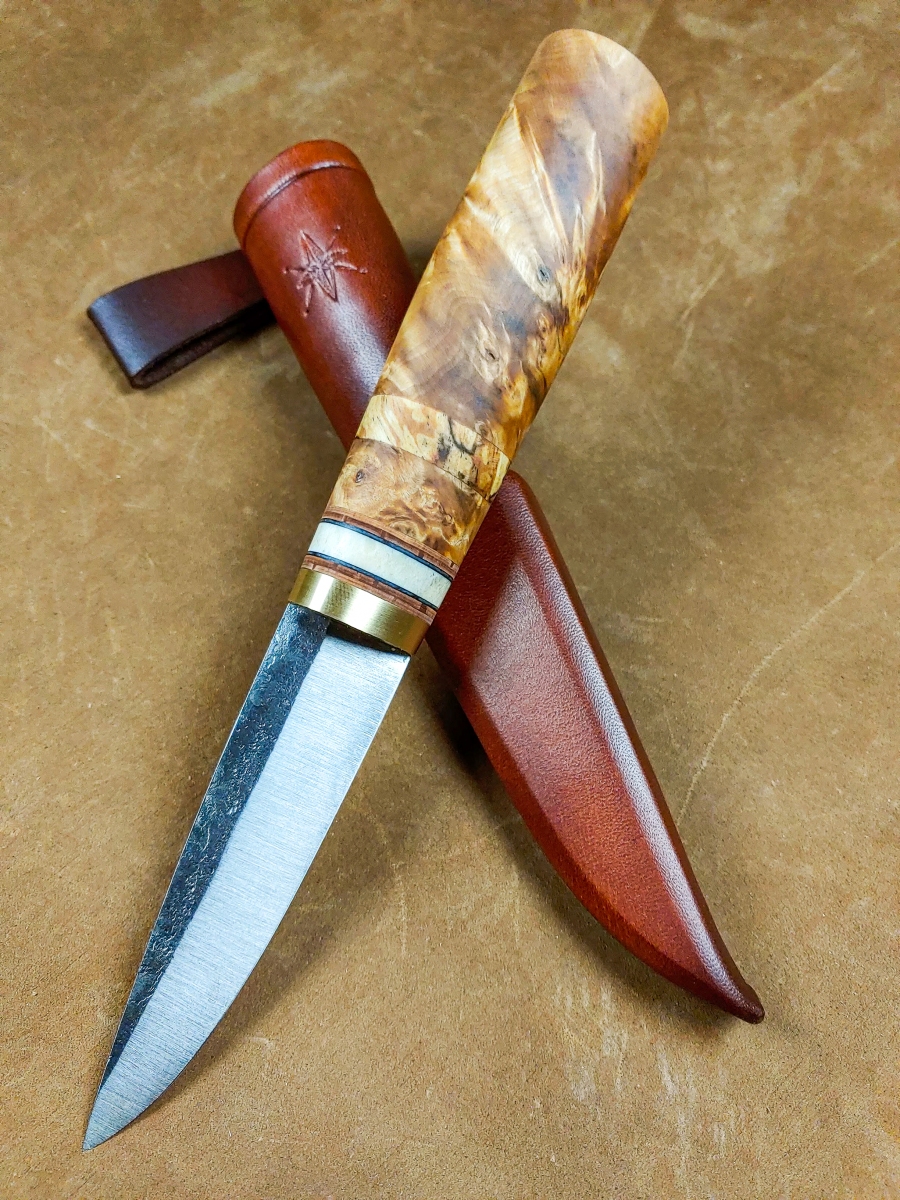Handcrafted Knives View photo gallery below. Choose between kitchen and puukko knives. Custom kitchen knives with wooden sayas Custom puukko knives with leather sheaths PHOTO GALLERY ◄ 1 2 3 4 ... 11 ► Ready to get started on your custom knife? Yaah, you betcha! Check out my instagram for our most up-to-date orders and shenanigans. wilderness.effects28 How this Cisco colored tube looks at me when I sim Instagram post 18062708635778317 EDIT: sold! Thanks for looking! If you liked this These two puukkos are all that remain from our 4th Here's a few glam shots of this flame figured yell This custom gyuto is headed to its forever home so I've had worse starts to my mornings... Instagram post 18092509165464290 This puukko is now complete and ready for it's for Been a bit of this sort of stuff lately.... A his/hers set going to California! Brass, birch Maiden voyage of our new @greyduckoutdoor Vision 1 Tripled up! We pulled up to this spot and droppe Nothing like jigging lakers out of a sea kayak to Got @aj.may.ostlund on her first few this morning. Instagram post 18054462103687859 2 hour bite window this AM. Man alive, when they So, this happened this morning....flew in off bott What in the blue blazes?! Bruh, do you even reticulate? Load More Follow on Instagram