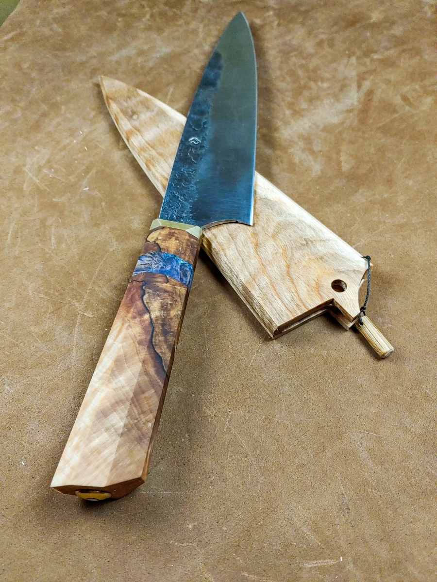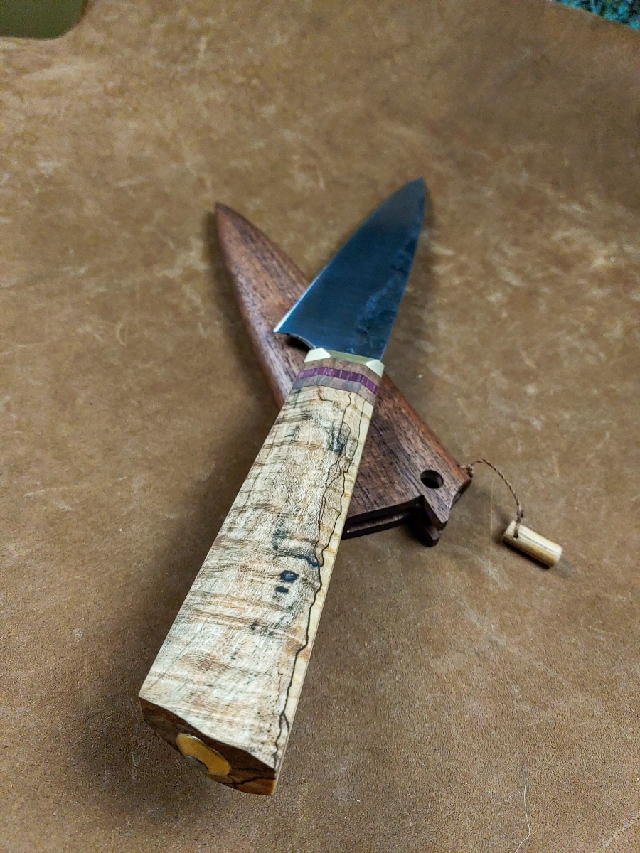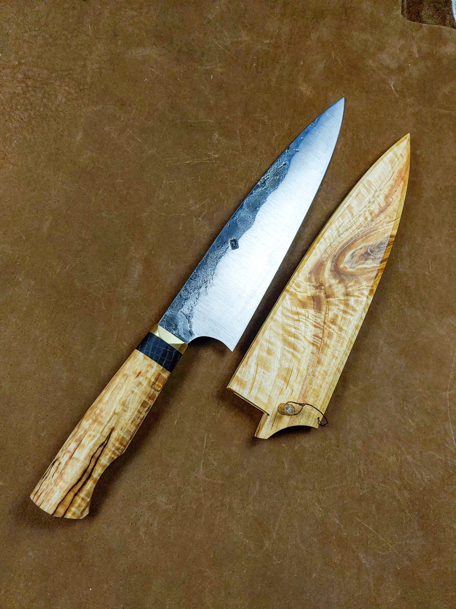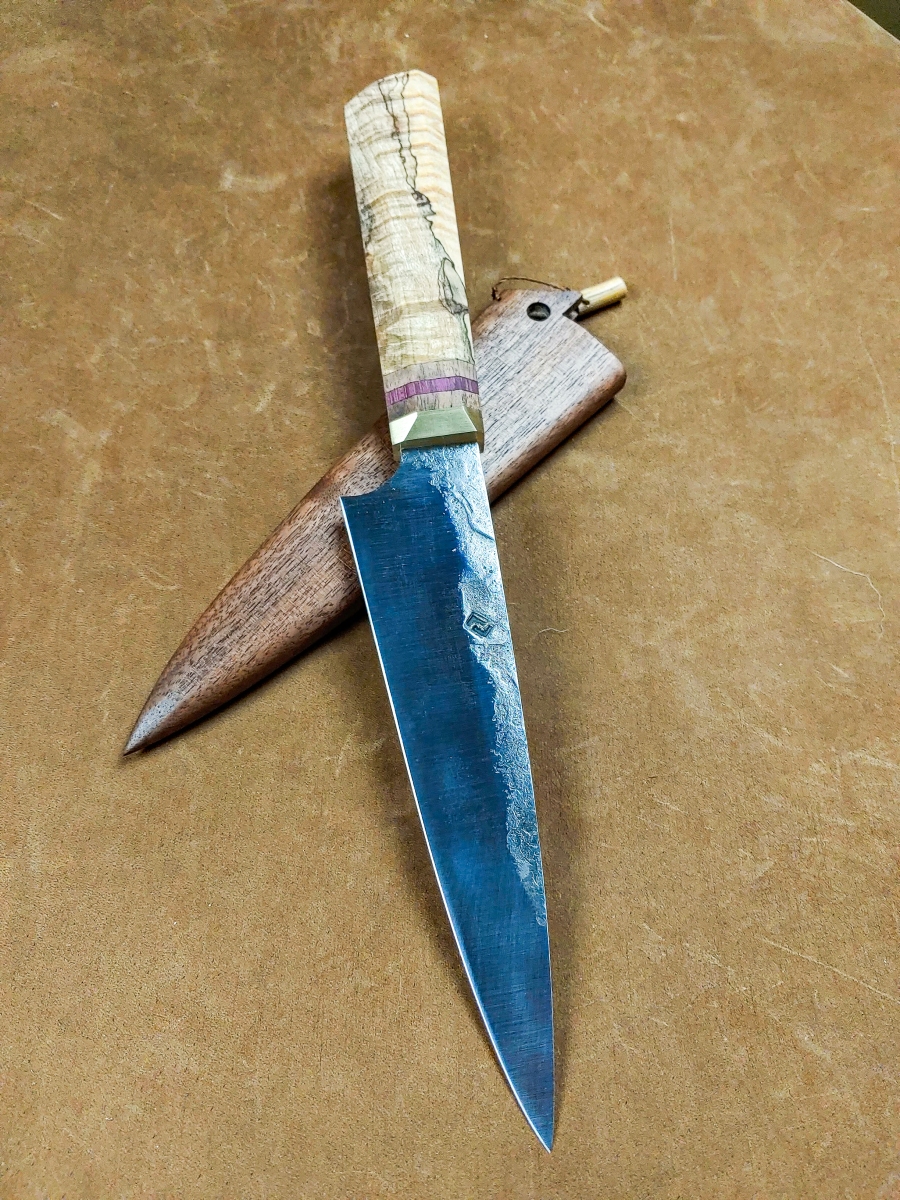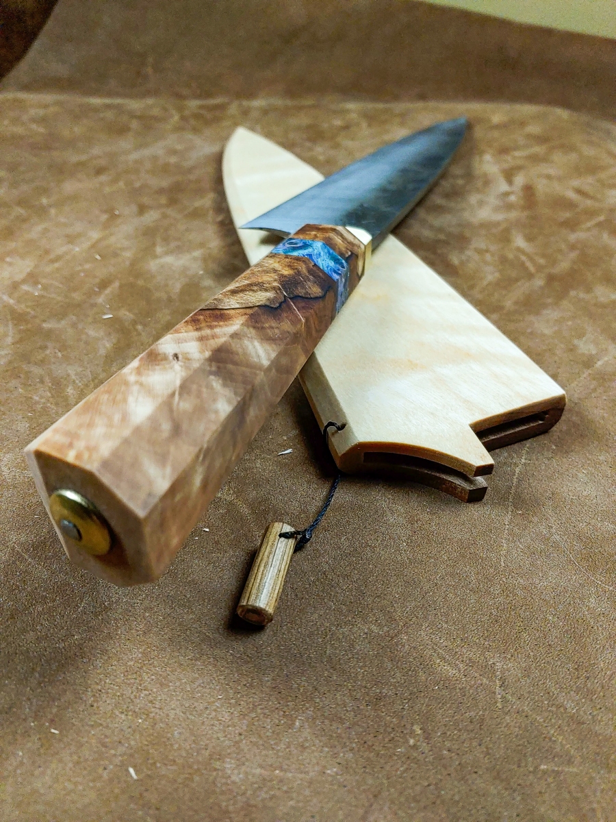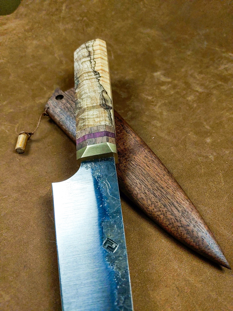 Handcrafted Knives View photo gallery below. Choose between kitchen and puukko knives. Custom kitchen knives with wooden sayas Custom puukko knives with leather sheaths PHOTO GALLERY ◄ 1 2 3 4 ... 11 ► Ready to get started on your custom knife? Yaah, you betcha! Check out my instagram for our most up-to-date orders and shenanigans. wilderness.effects28 How this Cisco colored tube looks at me when I sim Instagram post 18062708635778317 EDIT: sold! Thanks for looking! If you liked this These two puukkos are all that remain from our 4th Here's a few glam shots of this flame figured yell This custom gyuto is headed to its forever home so I've had worse starts to my mornings... Instagram post 18092509165464290 This puukko is now complete and ready for it's for Been a bit of this sort of stuff lately.... A his/hers set going to California! Brass, birch Maiden voyage of our new @greyduckoutdoor Vision 1 Tripled up! We pulled up to this spot and droppe Nothing like jigging lakers out of a sea kayak to Got @aj.may.ostlund on her first few this morning. Instagram post 18054462103687859 2 hour bite window this AM. Man alive, when they So, this happened this morning....flew in off bott What in the blue blazes?! Bruh, do you even reticulate? Load More Follow on Instagram