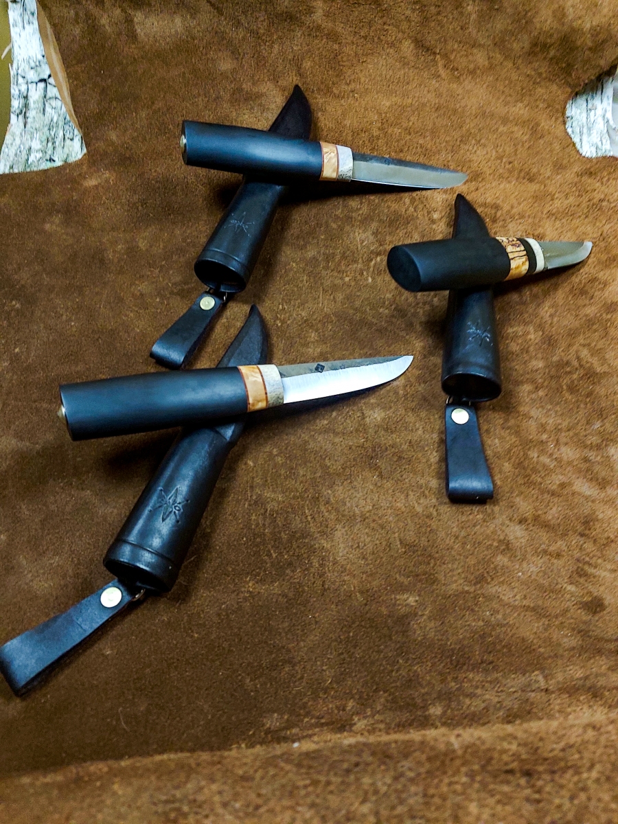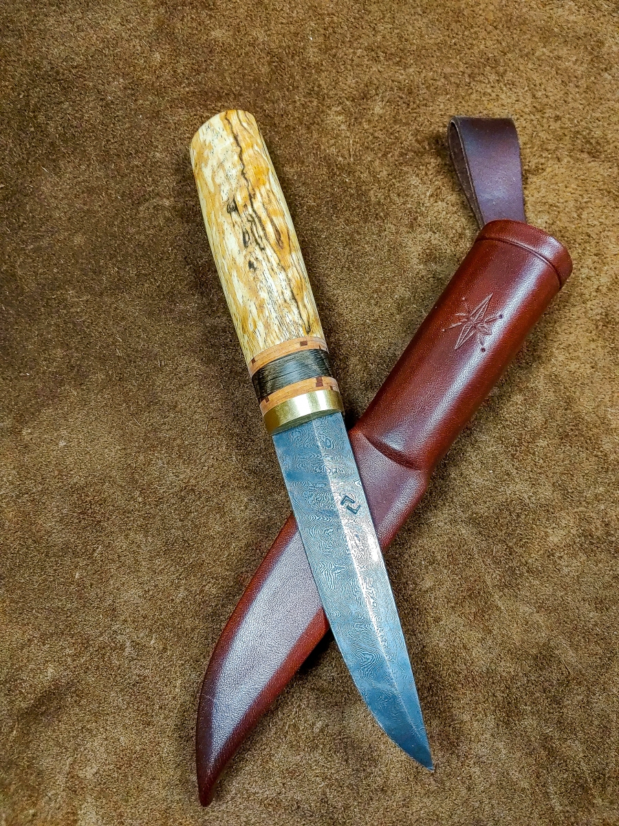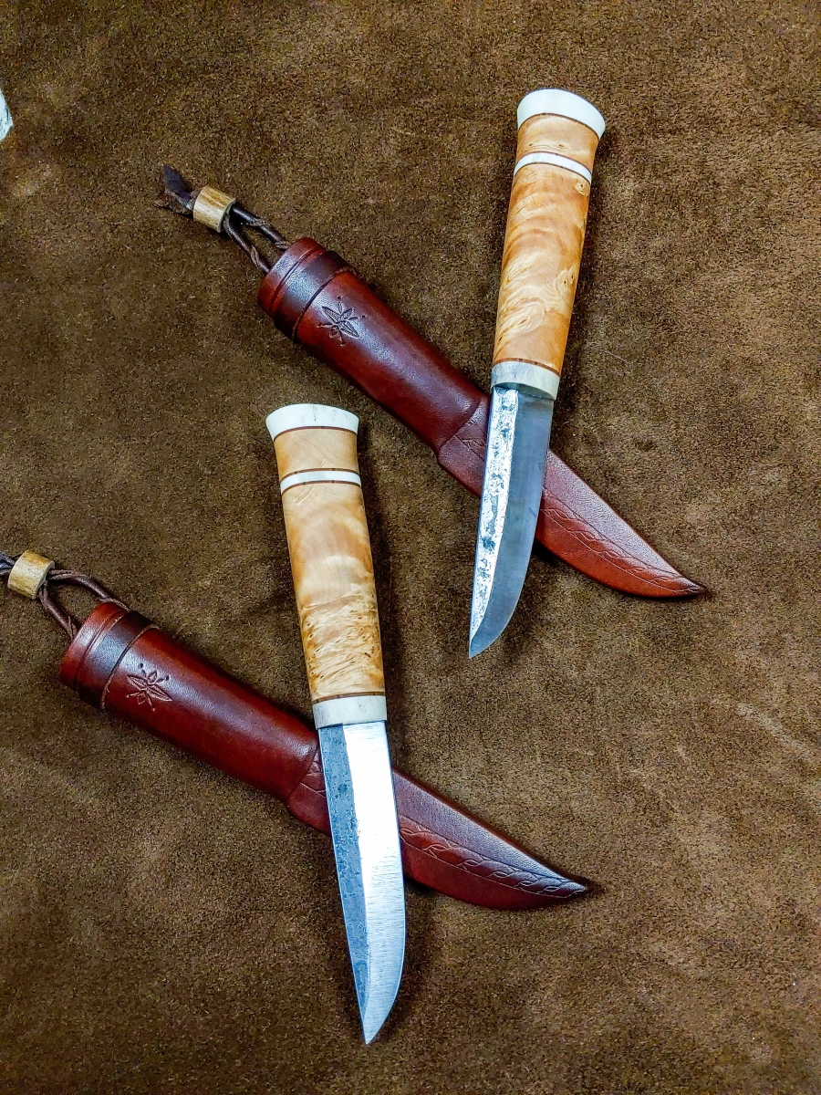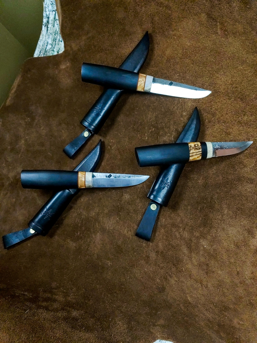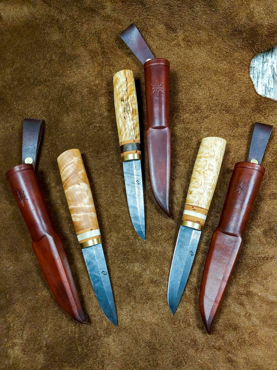 Handcrafted Knives View photo gallery below. Choose between kitchen and puukko knives. Custom kitchen knives with wooden sayas Custom puukko knives with leather sheaths PHOTO GALLERY ◄ 1 ... 5 6 7 ... 11 ► Ready to get started on your custom knife? Yaah, you betcha! Check out my instagram for our most up-to-date orders and shenanigans. wilderness.effects28 How this Cisco colored tube looks at me when I sim Instagram post 18062708635778317 EDIT: sold! Thanks for looking! If you liked this These two puukkos are all that remain from our 4th Here's a few glam shots of this flame figured yell This custom gyuto is headed to its forever home so I've had worse starts to my mornings... Instagram post 18092509165464290 This puukko is now complete and ready for it's for Been a bit of this sort of stuff lately.... A his/hers set going to California! Brass, birch Maiden voyage of our new @greyduckoutdoor Vision 1 Tripled up! We pulled up to this spot and droppe Nothing like jigging lakers out of a sea kayak to Got @aj.may.ostlund on her first few this morning. Instagram post 18054462103687859 2 hour bite window this AM. Man alive, when they So, this happened this morning....flew in off bott What in the blue blazes?! Bruh, do you even reticulate? Load More Follow on Instagram