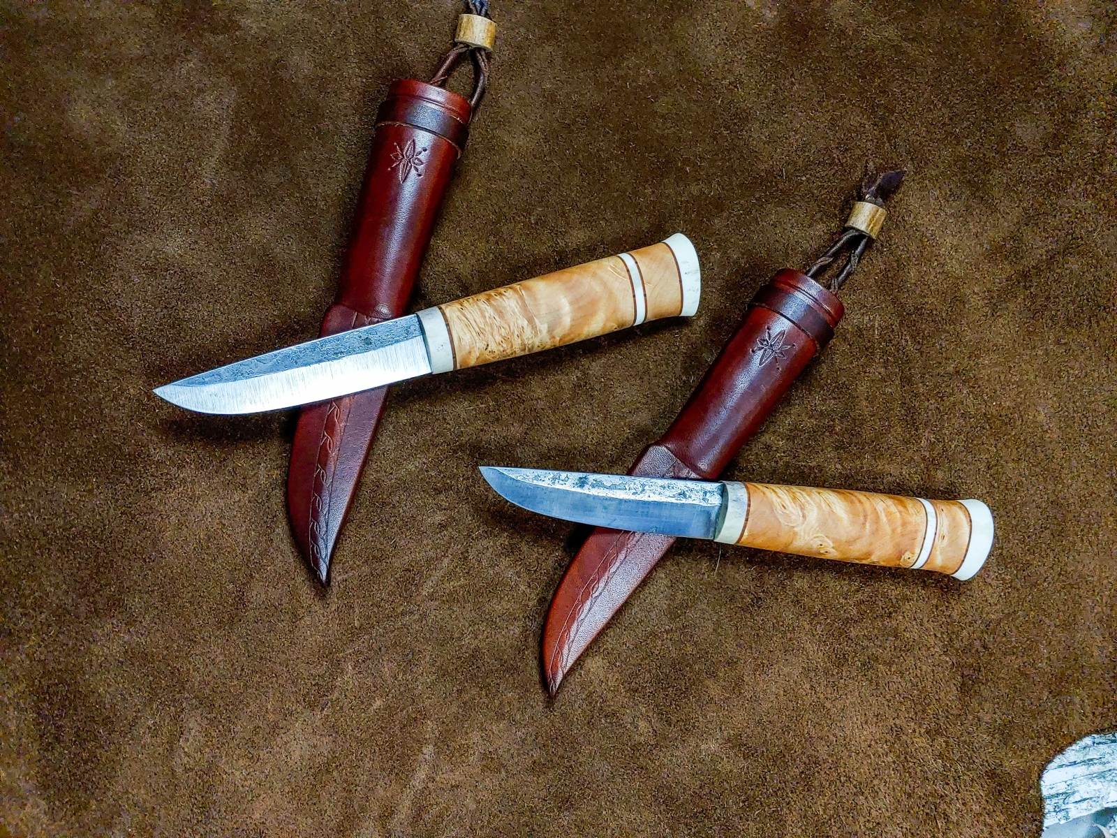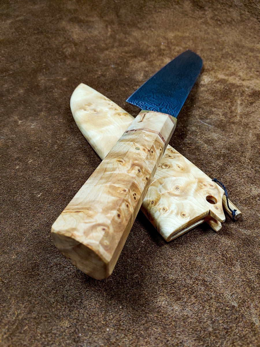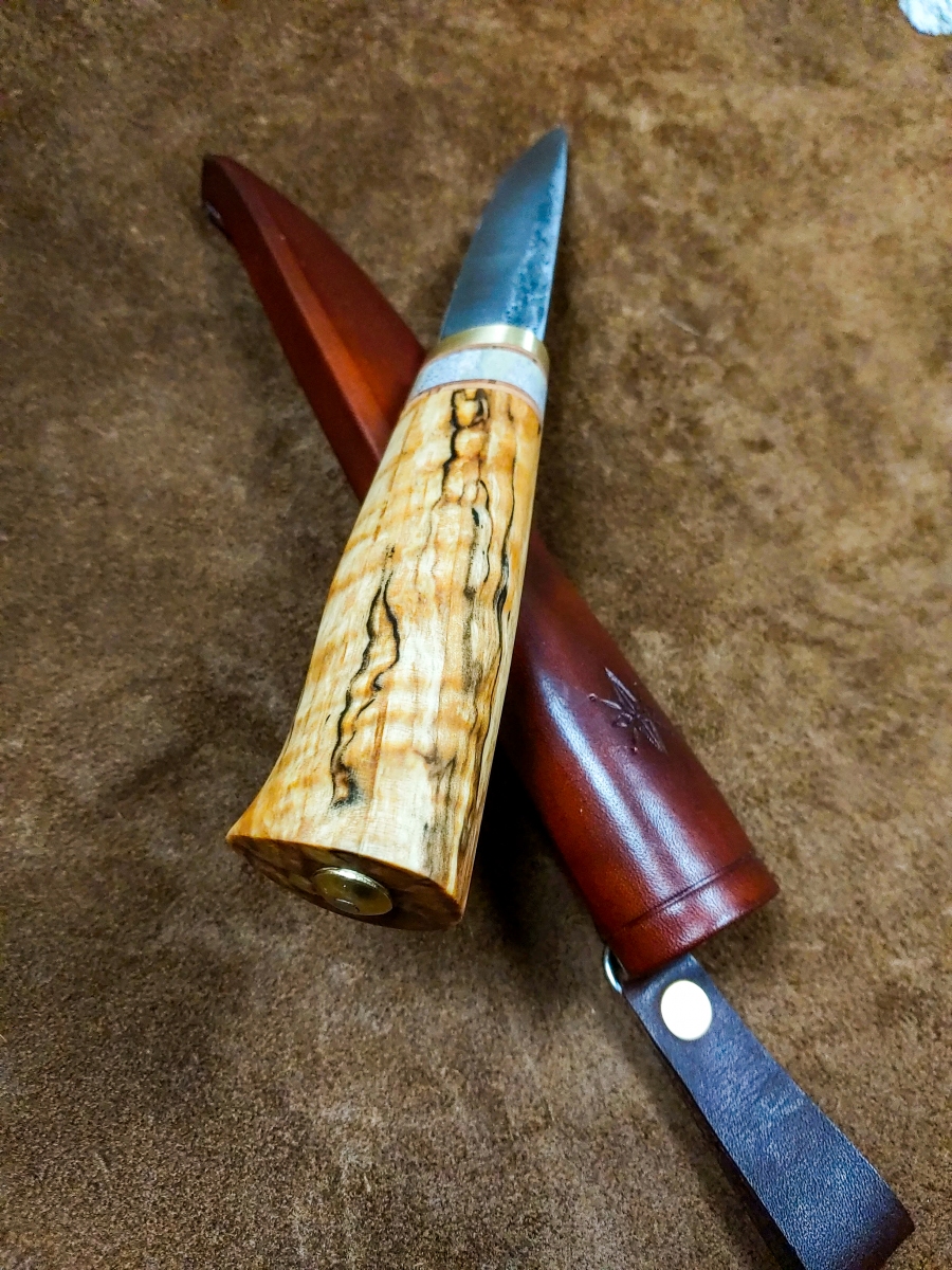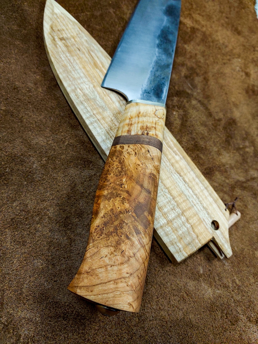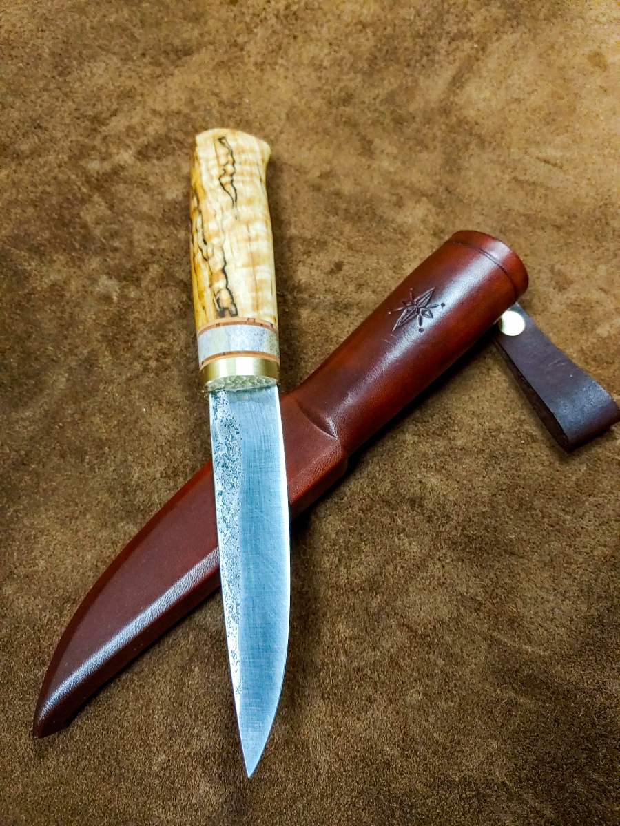Handcrafted Knives View photo gallery below. Choose between kitchen and puukko knives. Custom kitchen knives with wooden sayas Custom puukko knives with leather sheaths PHOTO GALLERY ◄ 1 ... 5 6 7 ... 11 ► Ready to get started on your custom knife? Yaah, you betcha! Check out my instagram for our most up-to-date orders and shenanigans. wilderness.effects28 How this Cisco colored tube looks at me when I sim Instagram post 18062708635778317 EDIT: sold! Thanks for looking! If you liked this These two puukkos are all that remain from our 4th Here's a few glam shots of this flame figured yell This custom gyuto is headed to its forever home so I've had worse starts to my mornings... Instagram post 18092509165464290 This puukko is now complete and ready for it's for Been a bit of this sort of stuff lately.... A his/hers set going to California! Brass, birch Maiden voyage of our new @greyduckoutdoor Vision 1 Tripled up! We pulled up to this spot and droppe Nothing like jigging lakers out of a sea kayak to Got @aj.may.ostlund on her first few this morning. Instagram post 18054462103687859 2 hour bite window this AM. Man alive, when they So, this happened this morning....flew in off bott What in the blue blazes?! Bruh, do you even reticulate? Load More Follow on Instagram